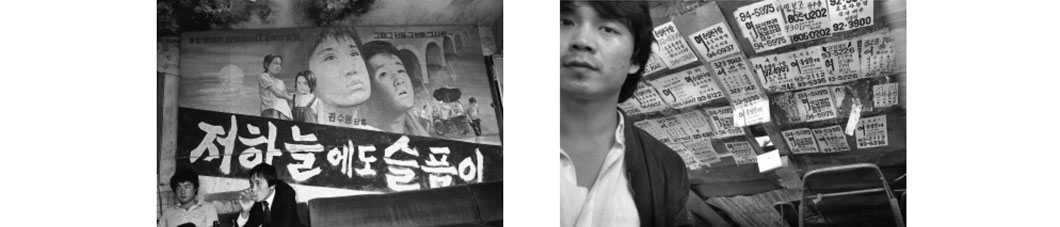 대한민국의 80년대는 그야말로 격동의 시대였다. 독재에 대한 저항과 그 저항을 무마하려는 또 다른 군부세력의 폭압이 치열하게 대립한 시기였다. 그 시기 남포동, 광복동, 중앙동 일대는 통기타 막걸리 고갈비와 같은 젊은 청춘의 낭만이 넘쳐나는 곳이었다. 그러나 정작 사진 속에는 낭만 대신 도시 소시민들의 우울한 표정만 있을 뿐이다. 대한민국의 갈등의 시대에 부산 원도심의 길거리에 넘치던 애로 영화 간판과 포스터들이 국민을 우매하게 만들기 위한 3S(Sex, Screen, Sports) 정책의 하나였음을 그땐 알았을까?