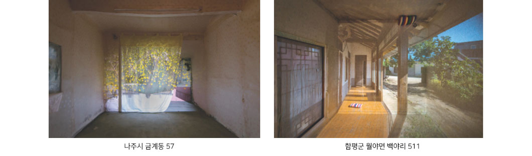 즉 어두운 빈 방에 맺힌 바깥풍경을 ‘다시’ 찍었다. 빈 방의 바깥풍경들은 빈 방에서 거주하다가 떠난 사람들에 대한 향수와 그리움을 일으킨다.