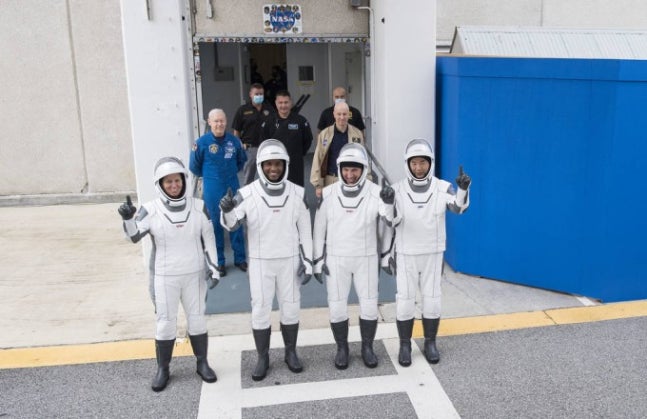 크루-1 미션에 참여한 우주인들. 왼쪽부터 섀년 워커, 빅터 글로벌, 마이크 홉킨스, 소이치 노구치. NASA 제공.