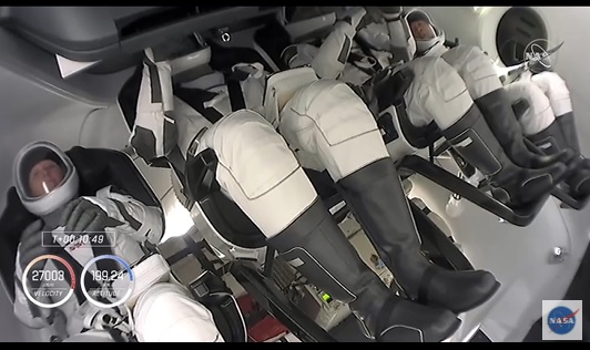 유인 우주선 드래건에 탑승해 ISS로 향하는 우주인들. 발사 영상 캡처.