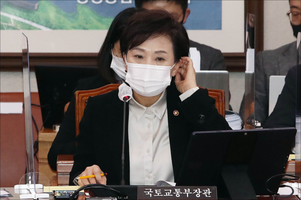 김현미 국토교통부 장관이 23일 오전 서울 여의도 국회에서 열린 국토교통위원회 종합국정감사에 출석하고 있다./연합뉴스