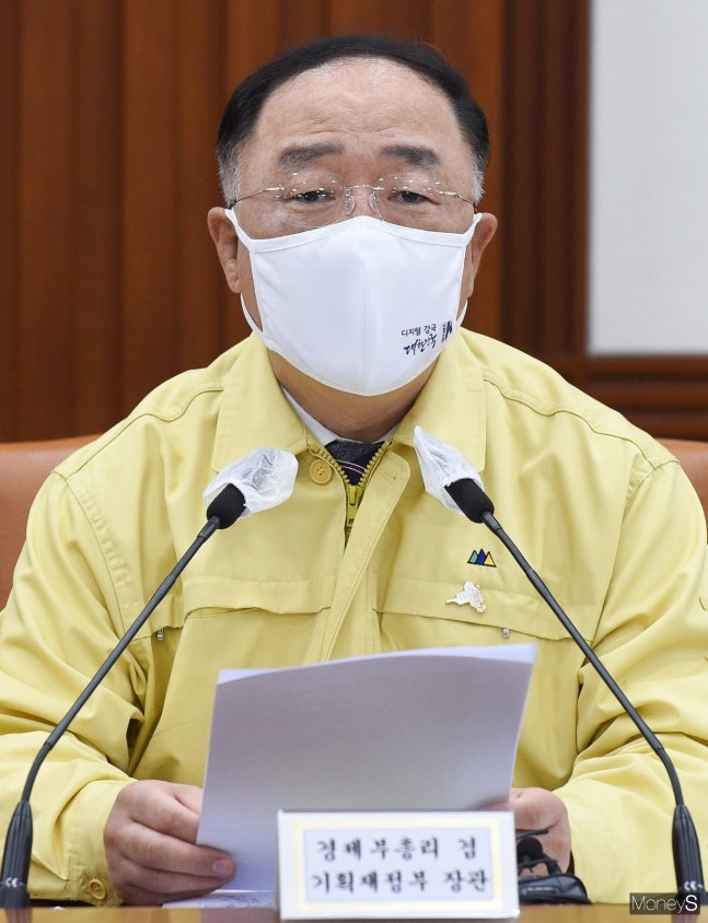 홍남기 경제부총리 겸 기획재정부 장관이 27일 오전 서울 세종로 정부서울청사에서 열린 제15차 비상경제 중앙대책본부 회의 겸 제33차 경제관계장관회의에서 모두발언하고 있다.