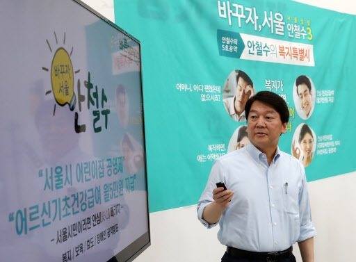 지난 2018년 6·13 지방선거에서 당시 안철수 바른미래당 서울시장 후보가 '스마트 복지도시' 정책 공약에 대한 기자 회견을 하고 있는 모습. [연합]