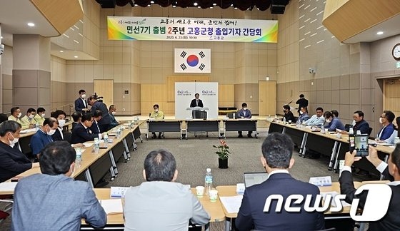 송귀근 고흥군수는 23일 군청 우주홀에서 군 출입기자, 실과단소장 등 60여명이 참석한 가운데 민선7기 전반기 주요성과와 남은 임기 추진 할 군정발전 방향을 제시했다./사진=뉴스1